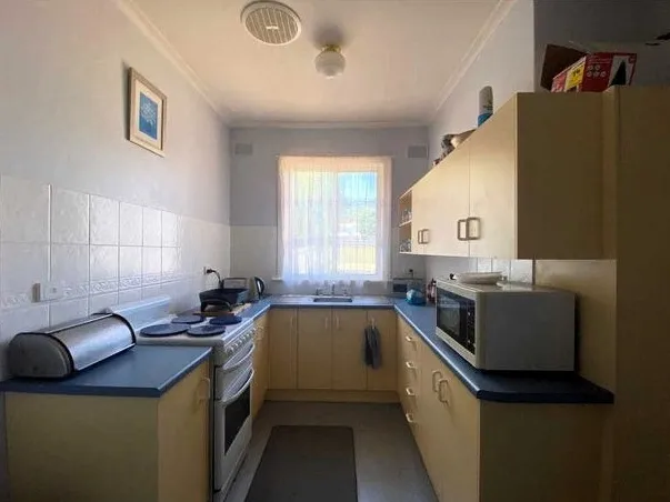 Inside, the layout is practical and welcoming, with an open living area that flows naturally into the kitchen and dining spaces. A split-system air conditioner ensures year-round comfort, while the kitchen offers ample storage and a functional layout.