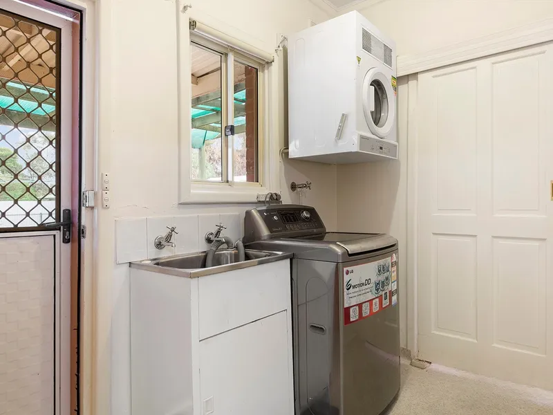 All three bedrooms are generously sized, with the master bedroom positioned at the front of the home to capture beautiful natural light and leafy outlooks. The main bathroom includes a bath, vanity, and separate toilet, while the internal laundry adds everyday convenience.