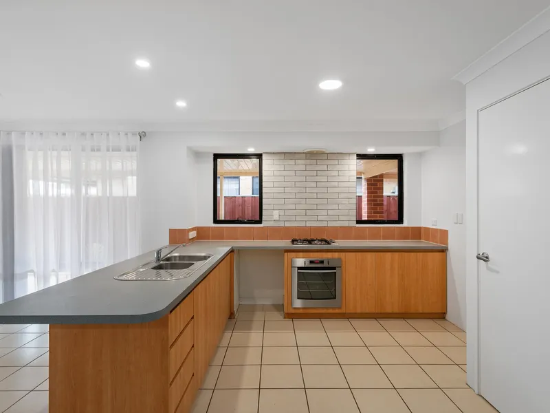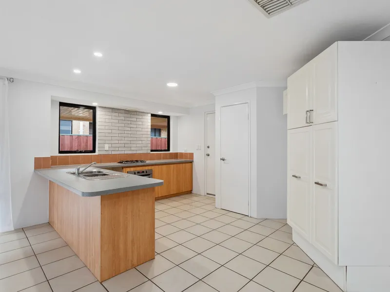Inside, you'll find an inviting open-plan kitchen, meals, and family area, creating a warm and welcoming atmosphere. The well-appointed kitchen is the heart of the home, featuring a built-in pantry, ample bench space that doubles as a breakfast bar, and plenty of storage options-ideal for those who love to cook and entertain.