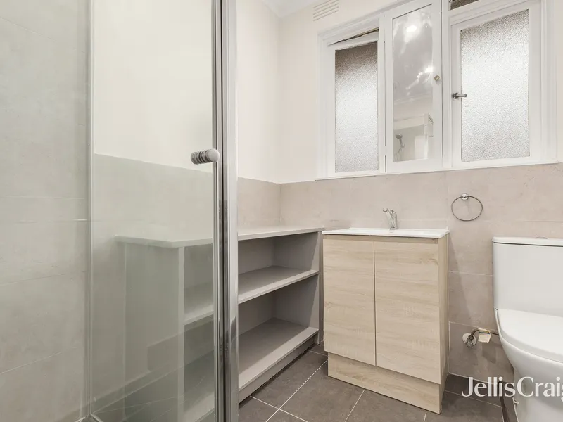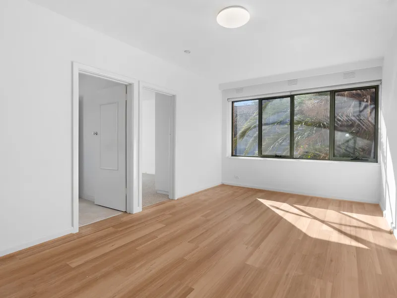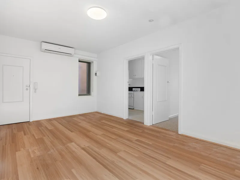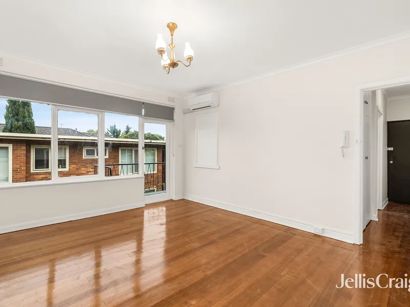 The apartment features a neat and bright bedroom, a tidy bathroom with bath and separate laundry, and a light-filled kitchen that flows into a spacious lounge area, complemented by leafy outlooks. A split-system air conditioner ensures year-round comfort.