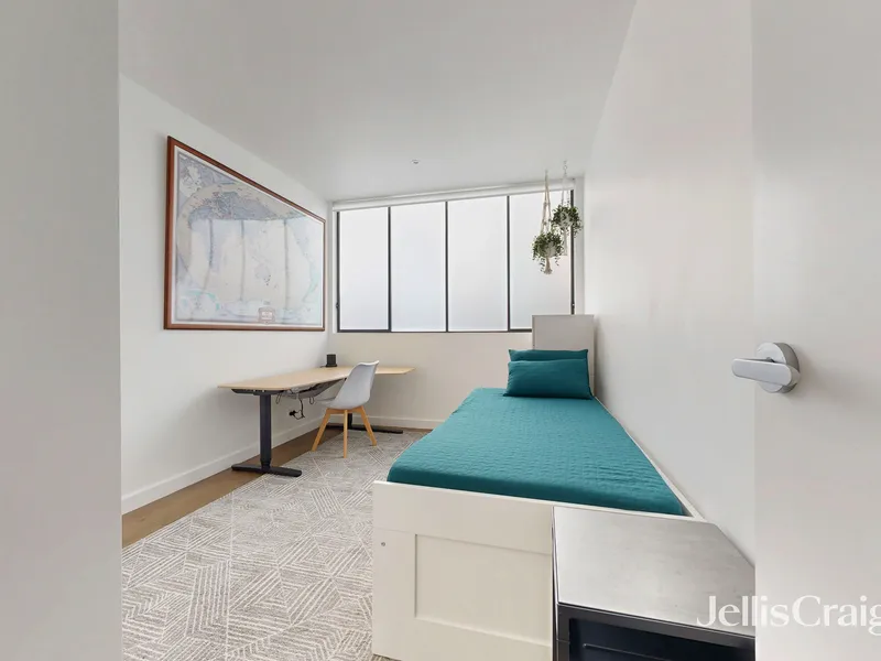 The top floor is home to two generously sized bedrooms, each with its own private ensuite, featuring premium Paco Jaansen fixtures and luxurious finishes. The master suite comes complete with a spacious walk-in robe, offering ample storage for even the most discerning fashion enthusiast. Tasmanian Oak timber stairs and Pallazzo Oak flooring carry the luxurious feel throughout, while high ceilings and large windows ensure light and space in every room.