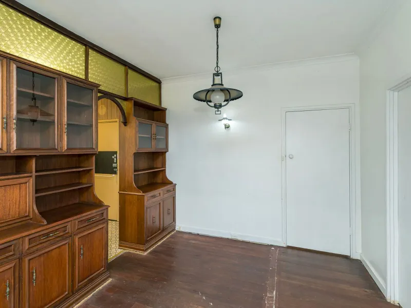 Elevated on the block, the tidy three-bedroom, one-bathroom home features a highly usable front and backyard. A welcoming front porch provides the perfect spot for a morning coffee or evening unwind. Inside, the cosy lounge showcases gorgeous jarrah floorboards and a feature wall, flowing through to the dining area complete with built-in cabinetry for practical storage.