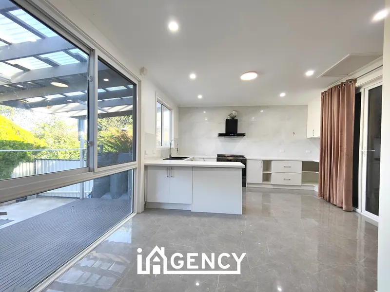 Featuring three spacious bedrooms, the master suite includes a full ensuite and walk-in robe (WIR). The home boasts a light-filled and spacious lounge and dining area, complemented by a modern kitchen that has been thoughtfully relocated to the alfresco area, perfect for entertaining and indoor-outdoor living.