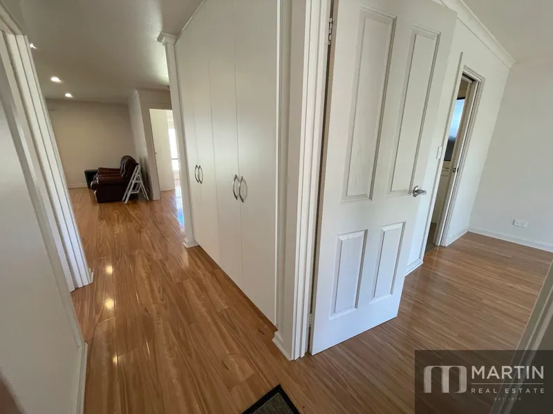 Easy clean floor in gloss timber with plenty of built ins in all rooms.