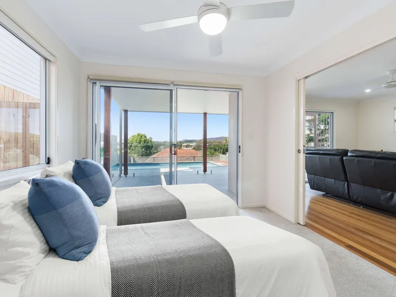 Rarely does a home of this calibre, size, and sophistication come to market. Perched in one of Enoggera's most elevated streets, this stunning residence captures sweeping views across leafy hilltops and offers an unrivalled combination of contemporary luxury, intelligent design, and seamless indoor-outdoor living.