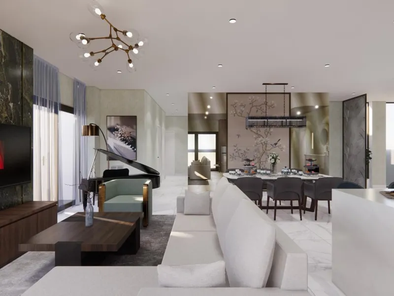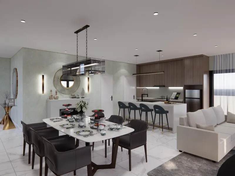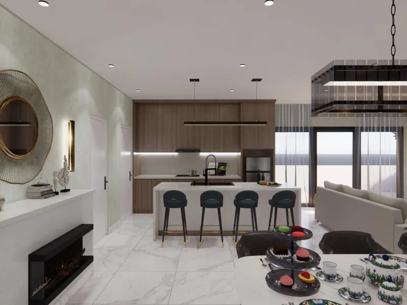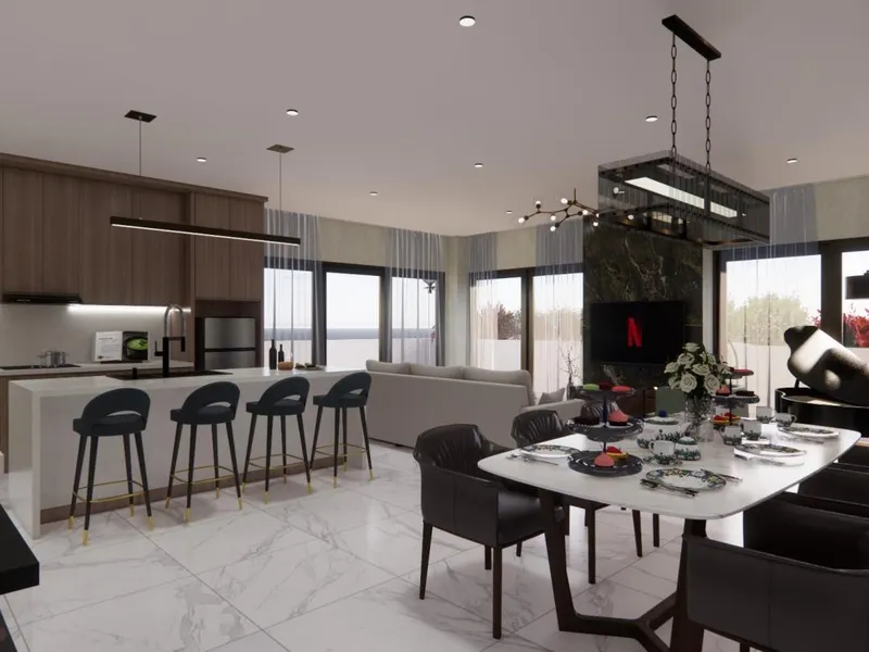 Open?plan kitchen with adjoining meals area