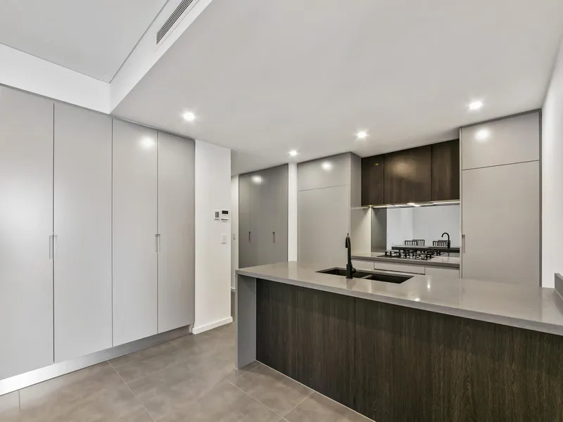 - Spacious open-plan living and dining area seamlessly flowing onto a north-facing balcony.