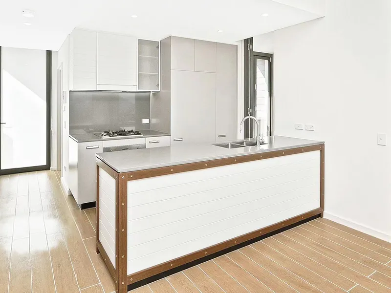 +Designer gas kitchen equipped with stone benchtops and high-end European appliances