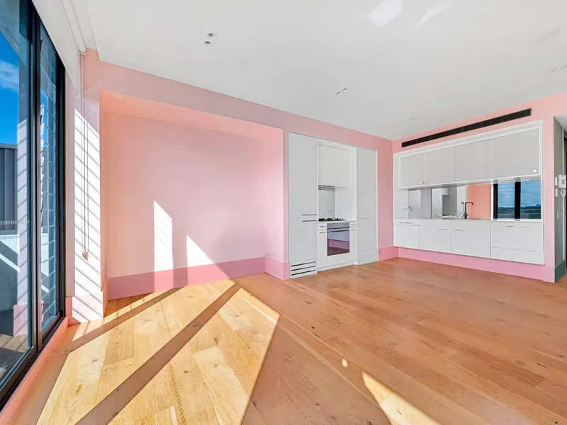 A bright and contemporary sixth-floor apartment within the sought-after ‘OneA’ complex, this well-designed one-bedroom residence with a separate study/media room delivers easy inner-city living in a highly connected Erskineville pocket. Defined by its east-facing aspect and expansive wall-to-wall windows, the home is filled with natural light and offers a comfortable, low-maintenance lifestyle in a well-maintained security building. Perfectly positioned, you’re just moments from the cafés and village atmosphere of Erskineville, the open green spaces of Sydney Park, and the vibrant dining and entertainment scene of Newtown, with excellent transport links close by.