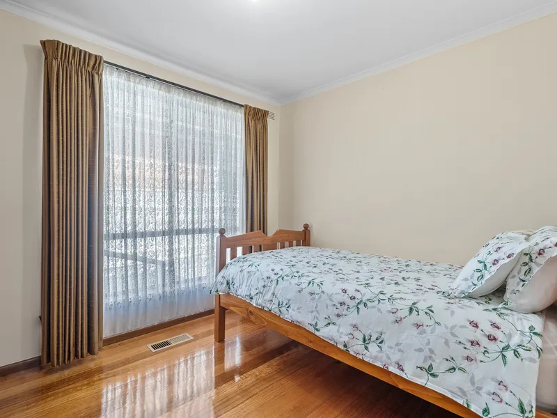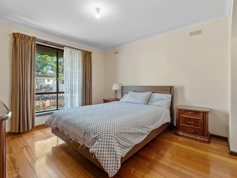 A fabulous location enjoying proximity to vibrant shopping precincts, cafés, parks and elite schools highlights the appeal of this pristine three bedroom, plus study or four bedroom brick family classic rich in retro character. Gleaming hardwood floorboards flow throughout spacious living and dining rooms, complemented by an original kitchen, updated with stainless steel appliances, opening to a light filled meals zone. Zoned for comfort and convenience, the bedrooms (master with ensuite) also enjoy built-in-robes and main bathroom nearby. Outside there’s a large undercover barbeque area and generous backyard for outdoor enjoyment. Offering ducted heating, evaporative cooling, storage, laundry, secure garaging for two cars and ample driveway parking. It’s within a short distance from Montgomery Park, Queens Park, buses, trams, CityLink and Strathmore Secondary College.