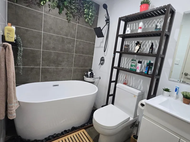 + Spacious bathroom with ceiling to floor tiles