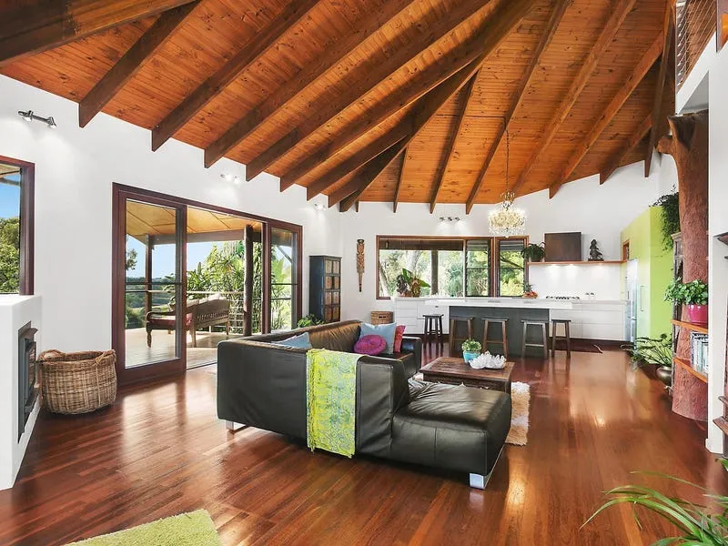 Nestled in the lush Byron Hinterland, this stunning timber home offers the perfect blend of rural serenity and stylish comfort on nearly 27 hectares of rolling countryside.
