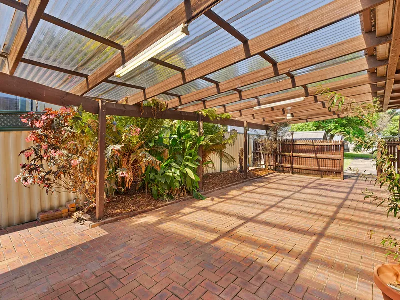 This brick veneer home boasts 3 large bedrooms, timber kitchen with separate meals area, generous lounge with polished floorboards, large entry with sitting room, updated bathroom, ducted heating and air conditioner plus an outdoor paved pergola area and large 4 car garage that has been separated into a workshop/games room.