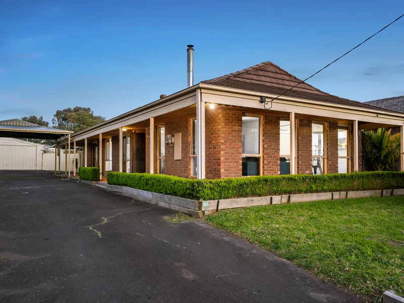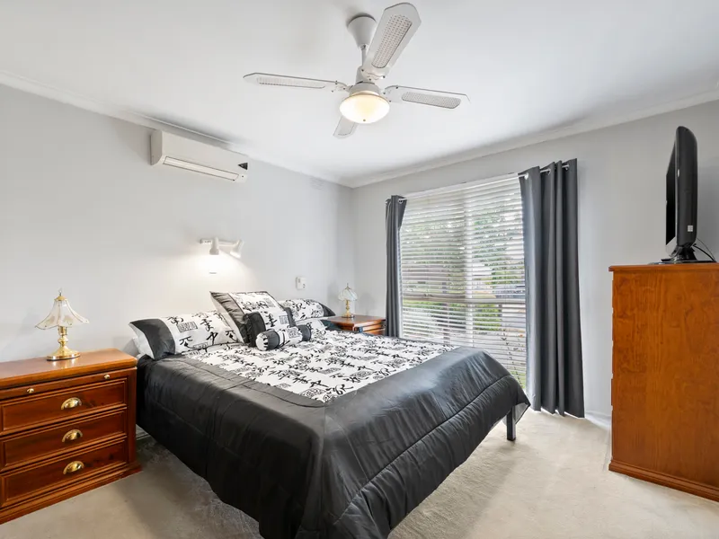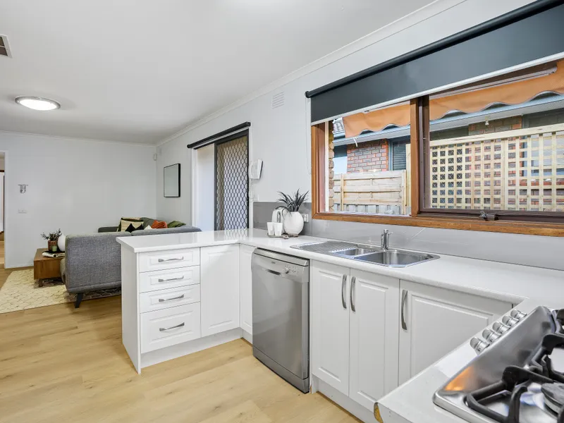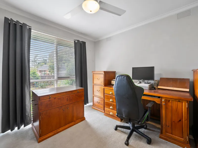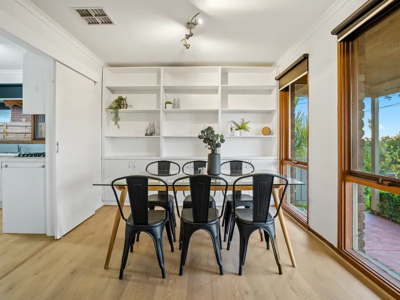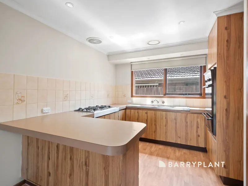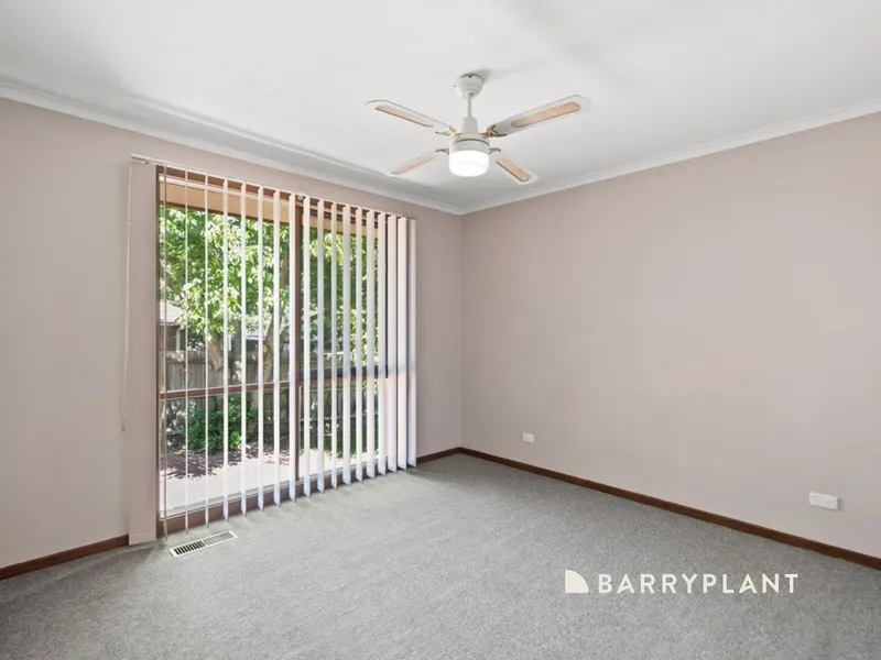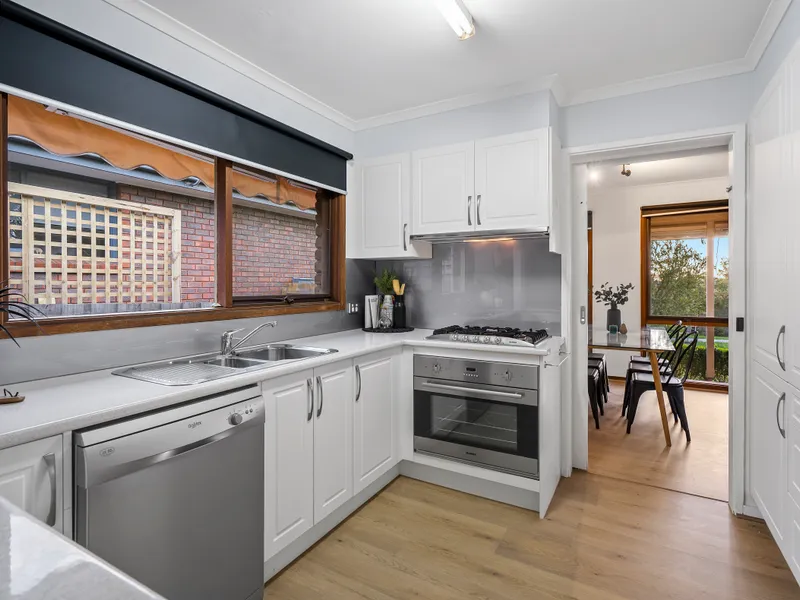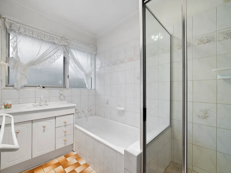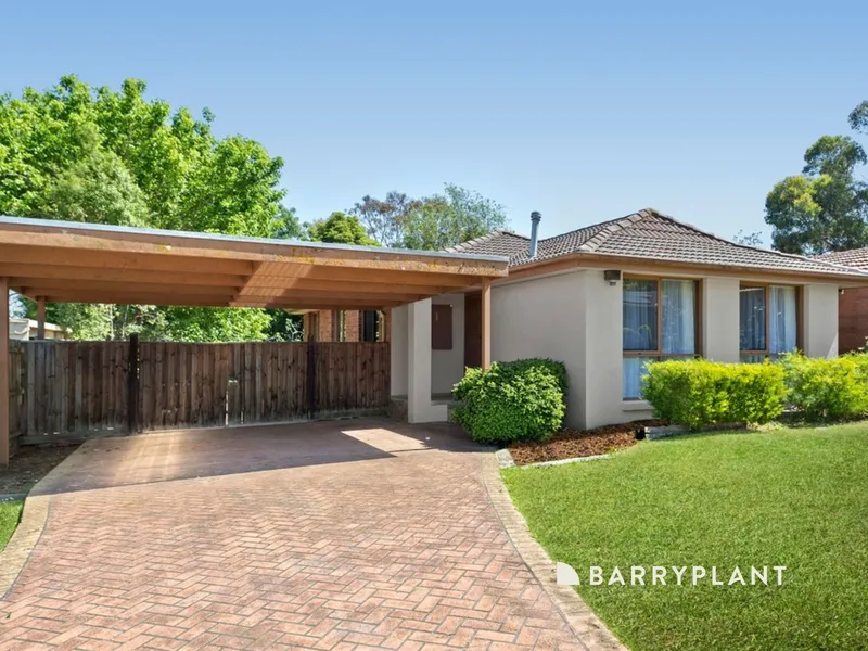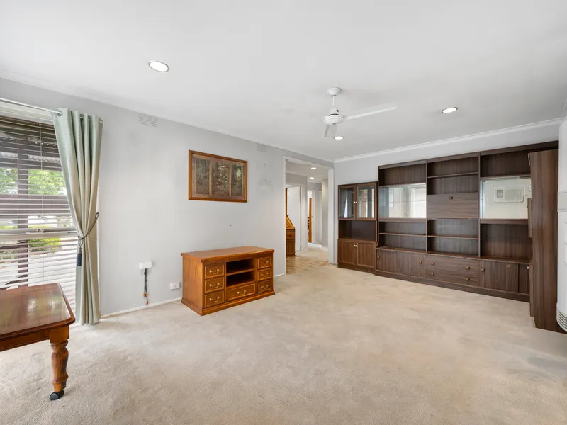 Set privately behind established gardens, this comfortable three-bedroom home delivers space, storage and everyday ease with a large rear yard. Offering scope to update, enhance and add value over time, the layout opens to a spacious living room at the front of the home, complete with a wall heater and air conditioning, flowing through to a dedicated dining zone with an integrated bar, ideal for casual gatherings. The well-appointed kitchen with breakfast bar retains its original character, while sliding doors extend the space outdoors to an expansive rear deck overlooking the large backyard. Three bedrooms include built-in robes and ceiling fans, with the main and second bedroom enjoying leafy outlooks across the front garden, complemented by a central bathroom with and a dedicated laundry. Outside, the property is rounded out by the generous deck, two sheds, water tank, double carport and a substantial double garage with space for storage or workshop use, all positioned close to Westfield Knox, Mountain Gate Shopping Centre, HV Jones Reserve, Waterford Valley Golf Course, schools, EastLink and Ferntree Gully Station.