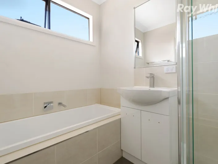 It has 4 bedrooms and 2.5 bathrooms on two immaculate levels delivering a light-filled open living, casual meals and pristine Caesarstone kitchen area. This features a breakfast bar and quality appliances, incl. a dishwasher (installation upon tenancy), The master bedroom features an ensuite and WIR, the 3 further bedrooms have BIRs, tasteful central bathroom with separate bath and shower, powder room, laundry with external access, ducted heating and reverse cycle cooling, open alfresco, water tank, storage shed, and a double remote garage.