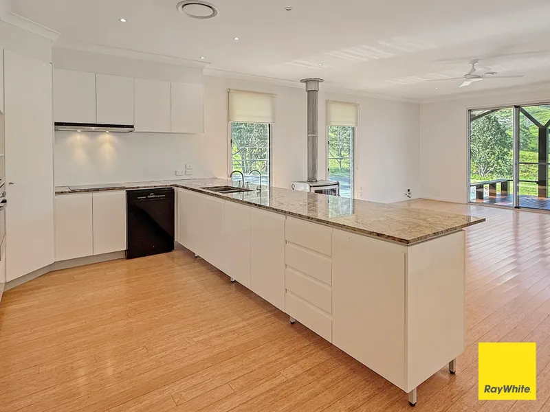 Despite its secluded feel, the home is only a short drive to the picturesque township of Canungra, offering cafés, restaurants, supermarket, medical services, hotel and service stations, and approximately 25 minutes to the Gold Coast.