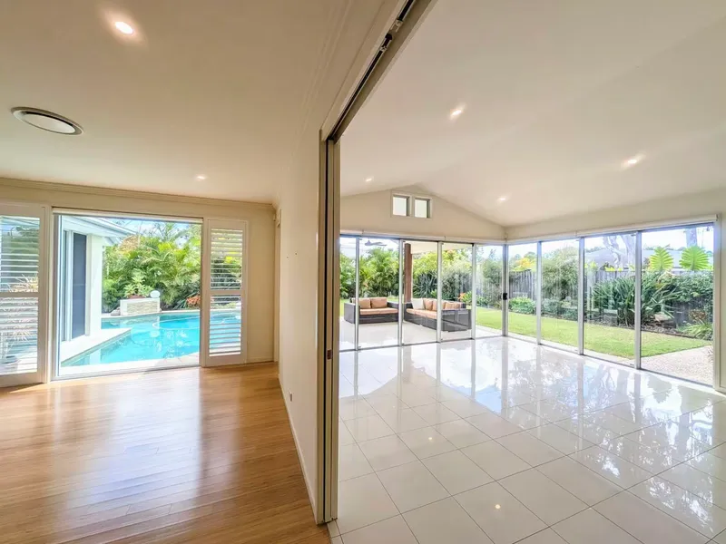 This well-designed single-level residence features high ceilings, abundant natural light and multiple living zones, providing plenty of space for both everyday family living and entertaining. The modern kitchen includes a large stone island bench, gas cooktop and generous storage, and flows seamlessly to the main living areas and outdoor entertaining space. Stacker doors open to a covered alfresco area, level backyard and private in-ground swimming pool, perfect for relaxing or hosting family gatherings.