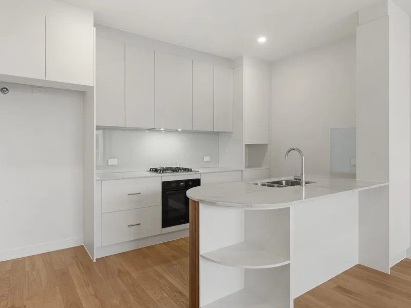 The contemporary kitchen is well-appointed with stainless steel appliances, a 900mm gas cooktop, dishwasher, large stone island bench, and ample storage. Stylish modern bathrooms add to the appeal, with the main bathroom featuring a full-size bathtub.