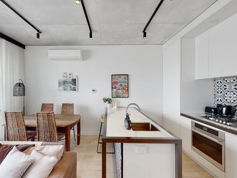 The open?plan kitchen and living area provides a welcoming, functional space with ample bench space, abundant storage, floating floors and terrific natural light. The living zone flows onto a balcony, creating an effortless indoor–outdoor feel, while a split?system ensures year?round comfort. Both bedrooms are spacious, fitted with built?in robes, and each opens to its own private balcony-an increasingly rare luxury in such a central location. The updated bathrooms are beautifully renovated and positioned for easy access, and the convenience of a tucked?away Euro laundry enhances the home's practical layout. While the secure garage with two car spaces adds exceptional value in a sought?after urban neighbourhood.