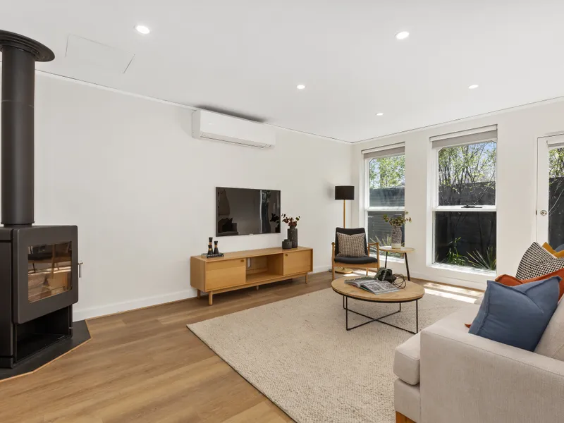 Additional features include split-system cooling, ducted heating, and the convenience of a single lock-up garage. Fully renovated and impeccably presented, this unique home delivers effortless living in a truly unbeatable Fitzroy location.