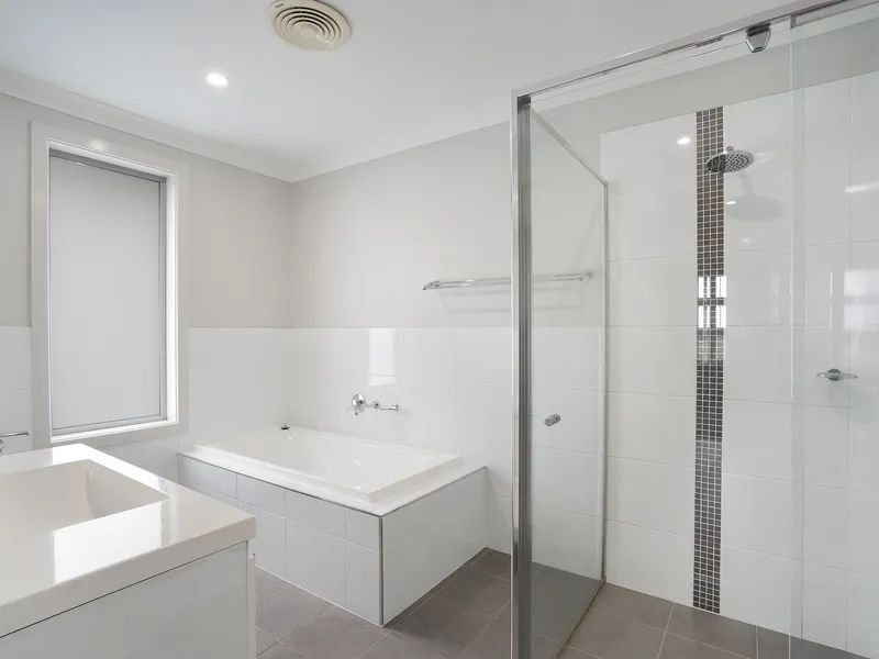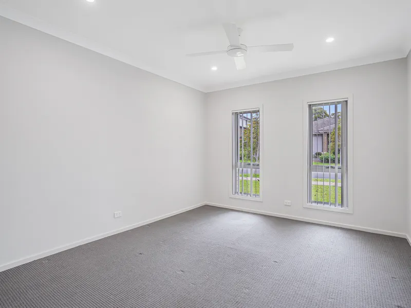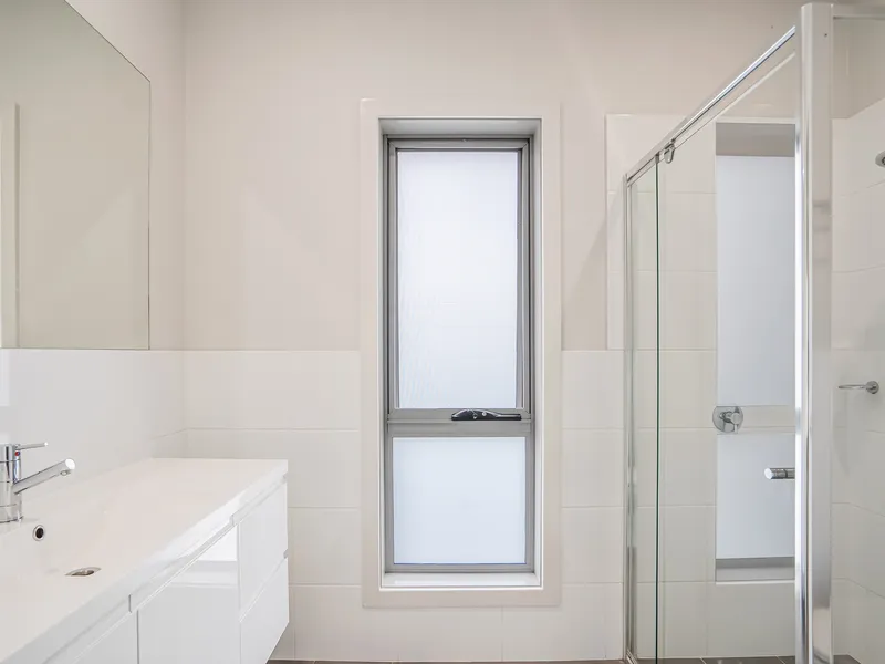 This stylish four-bedroom home is perfect for families, offering a modern two-storey layout with quality finishes throughout. The lower level features a spacious main bedroom with ensuite and built-in robes, a sleek kitchen with stainless steel appliances, a powder room, and a convenient European laundry. A versatile room at the entrance can be used as a home office or extra living space. Reverse cycle air conditioning ensures year-round comfort.