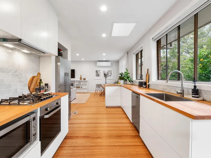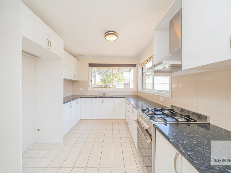 Freshly painted with updated interiors throughout, the home features a generous open plan living and dining room. A spacious separate kitchen includes abundant storage with a concealed appliance cabinet. Three carpeted bedrooms are each equipped with built-in wardrobes, and are complemented by a renovated contemporary central bathroom with an accessible walk-in shower, plus a convenient second toilet. At the rear, an expansive undercover area offers ample space for alfresco entertaining and year-round outdoor living, while the substantial backyard includes plenty of lawn for kids' play.