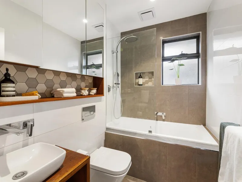 A central bathroom services the home, complemented by a full laundry and a convenient powder room for guests.