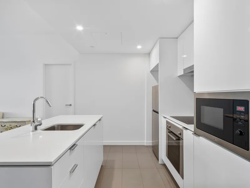 The apartment features a bright and open living area, perfect for relaxing or hosting friends. It includes a master bedroom with a private ensuite, a second well-sized bedroom, and a separate main bathroom. The contemporary kitchen is thoughtfully designed with quality appliances and ample storage, making everyday living easy and enjoyable. A secure car space is also included for added convenience.