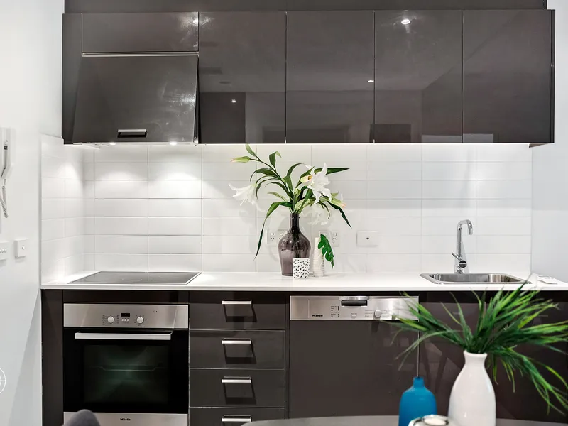 • Modern galley style kitchen with stone bench tops and quality appliances