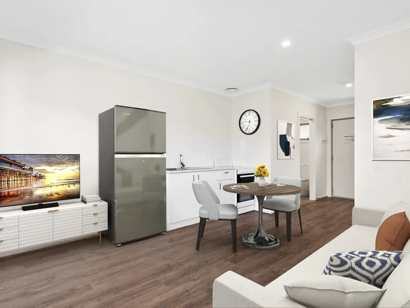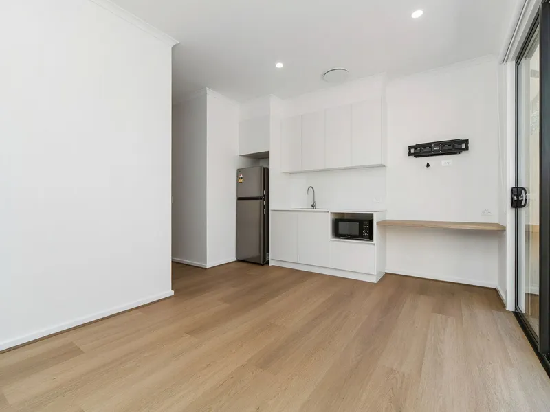Designed for comfortable long-term living, this brand-new self-contained studio room offers a bright, open and highly functional layout. Step into your own open-plan meal-preparation zone, seamlessly connecting to the living and dining area and leading out to a private, easterly facing courtyard—perfect for morning sun and fresh air.