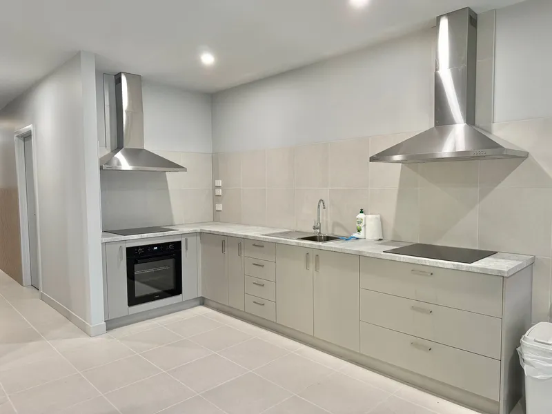 • Kitchen with electric cooking + ample storage