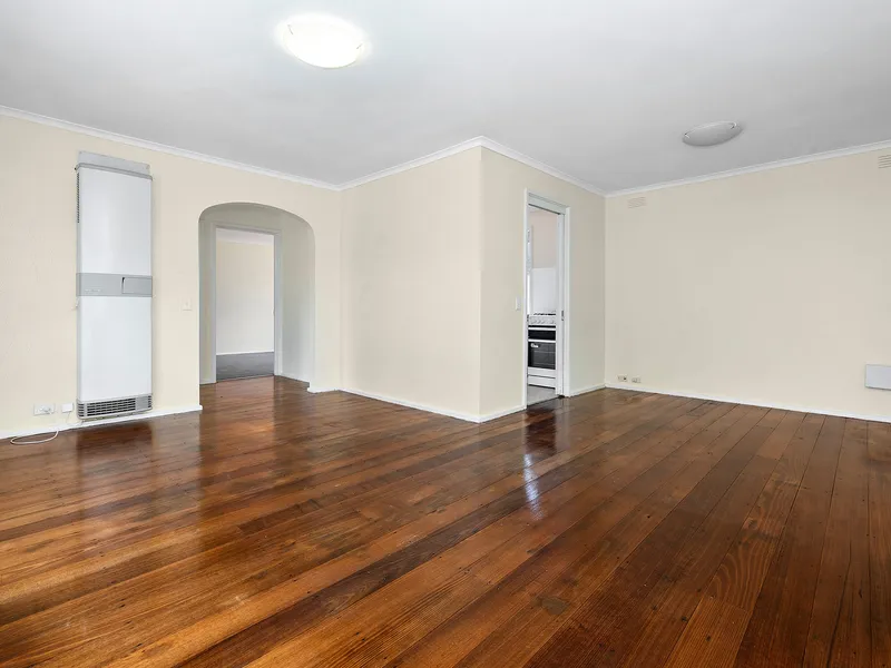 • Bright living area with polished timber floors and gas wall furnace
