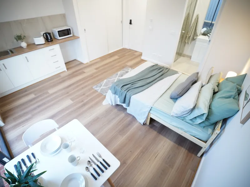 - Access to a modern shared kitchen with electric cooktop and oven