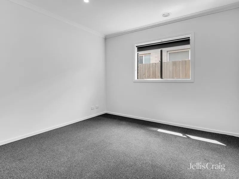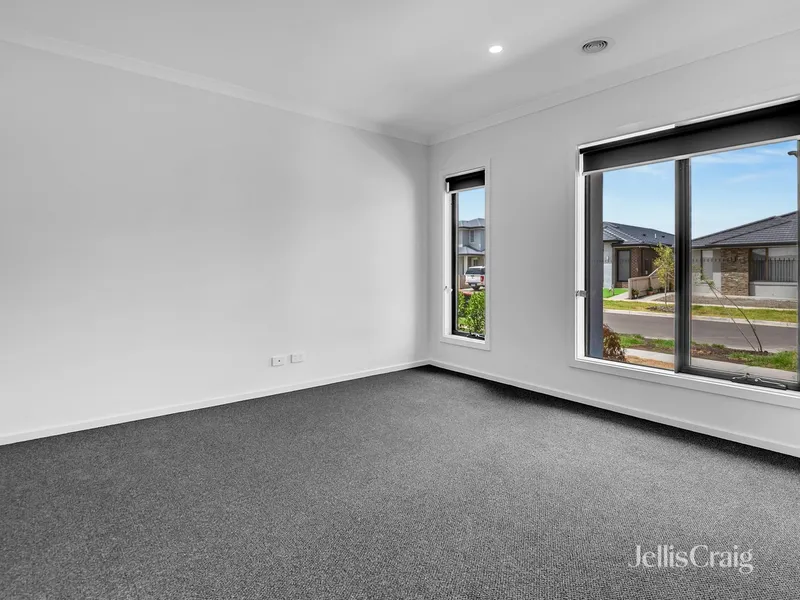 Located in Fraser Rise, this home includes four bedrooms and multiple living zones. At the front of the home is a multipurpose room fitted with blinds.