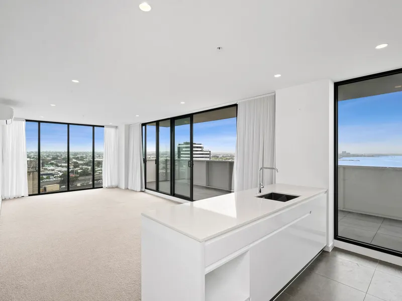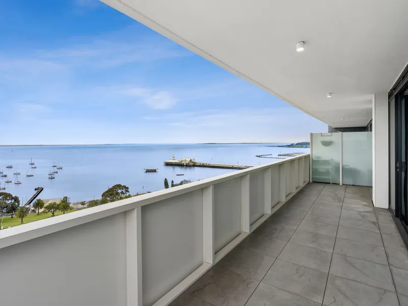 Take in the breathtaking views sweeping across the picturesque Corio Bay from this immaculate, two-bedroom apartment, ideally suited for the discerning occupant. Offering securing and privacy, you can enjoy the advantages of the gym and common spaces including an open-air entertaining area which also capturing the magnificent views. Boasting entry hall, open plan living/dining and kitchen all with direct access to the large balcony. The kitchen is well appointed and includes an island bench, integrated dishwasher and modern appliances. Both bedrooms include built in robes, main with ensuite. Second bathroom, European laundry with washer and dryer supplied, secure, basement parking and storage facility. Other features include heating/cooling, floor to ceiling windows, plush carpet and tiled flooring. ***Note, this building has embedded networks for internet and electricity***