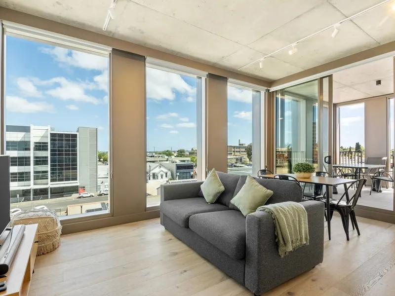 • Light-filled living areas with polished hardwood floors