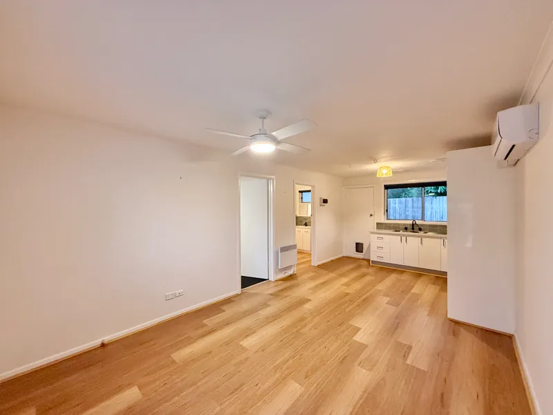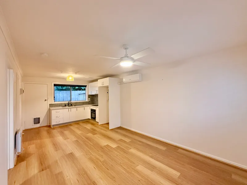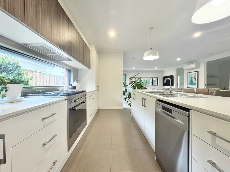 - Open-plan kitchen and living featuring split system heating and cooling for year-round comfort