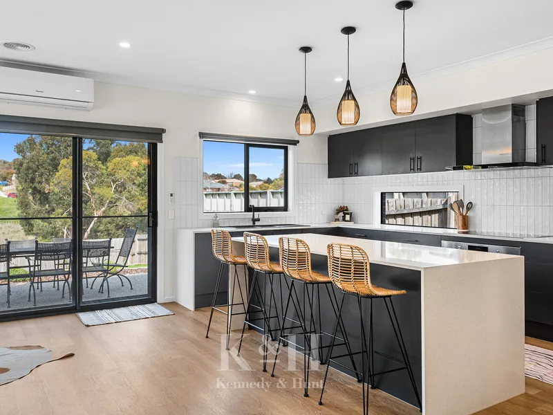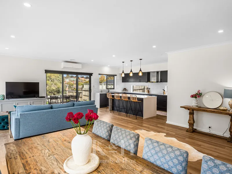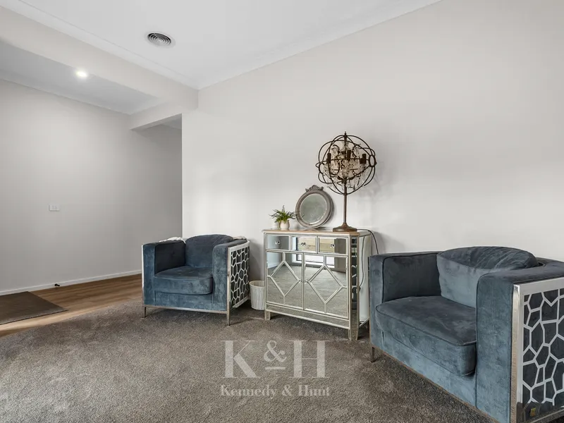 Upstairs, you'll find three generously sized bedrooms, all with built-in robes perfect for growing families. The main bathroom offers a luxurious retreat with floor-to-ceiling tiles, a separate shower and bath, and a private toilet for added convenience. An additional upstairs retreat provides a quiet space to relax or entertain, all comfortably serviced by split systems for year-round climate control, complemented by gas ducted heating.