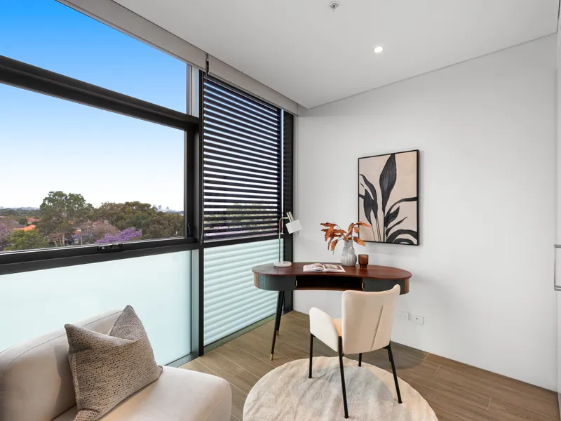 Be the first to lease these impeccably crafted 1-bedroom + study apartments, perfectly positioned in the heart of Gladesville. Designed for modern living and finished to an exceptional standard, each residence features open-plan interiors, tiled lounge/dining spaces, plush carpeted bedrooms and a choice of refined light or dark designer colour schemes. Architecturally inspired with striking angles, the building maximises natural light throughout, creating bright and inviting living spaces.
