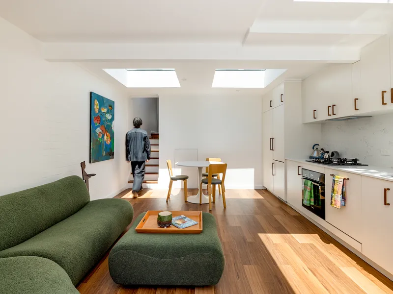 This semi-detached residence operates within Glebe's traditional cottage footprint while delivering spatial complexity through vertical volume and custom joinery. The one bedroom cottage sits close to Sydney Harbour's foreshore, with north facing outdoor space that captures winter sun and summer breezes.