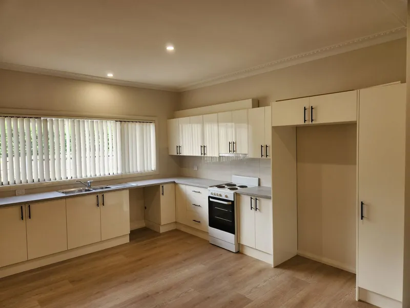Stylish, Open plan gas cooking kitchen with granite benchtop