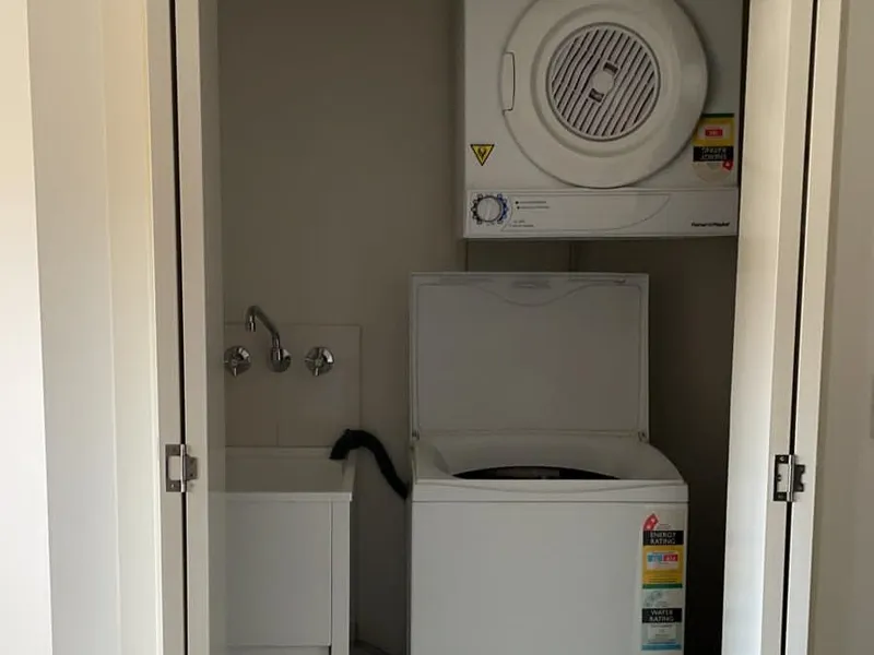 The apartment features a secure entry, a spacious bedroom with built-in robes, and a well-appointed bathroom complete with a European laundry (washing machine and dryer included). The open-plan kitchen is equipped with a dishwasher, fridge, and microwave, flowing seamlessly into the meals area and out to a covered alfresco terrace—ideal for relaxing or entertaining.