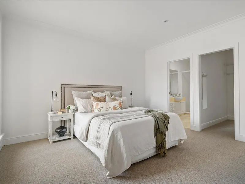 A wide entry hall introduces expansive living and dining zones bathed in beautiful northern and eastern light, flowing seamlessly to a superbly private garden spanning the full width of the home. The modern kitchen, appointed with Bosch appliances and abundant storage, enhances everyday ease while effortlessly supporting entertaining.