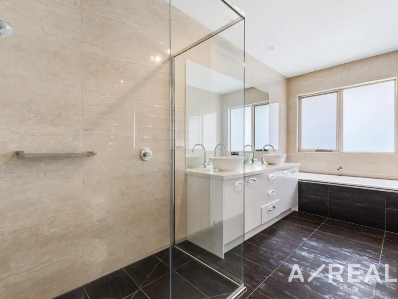 Upstairs comprises three additional bedrooms, including a spacious master bedroom with a walk-in wardrobe. The remaining bedrooms are fitted with built-in robes, ensuring ample storage for comfortable family living.