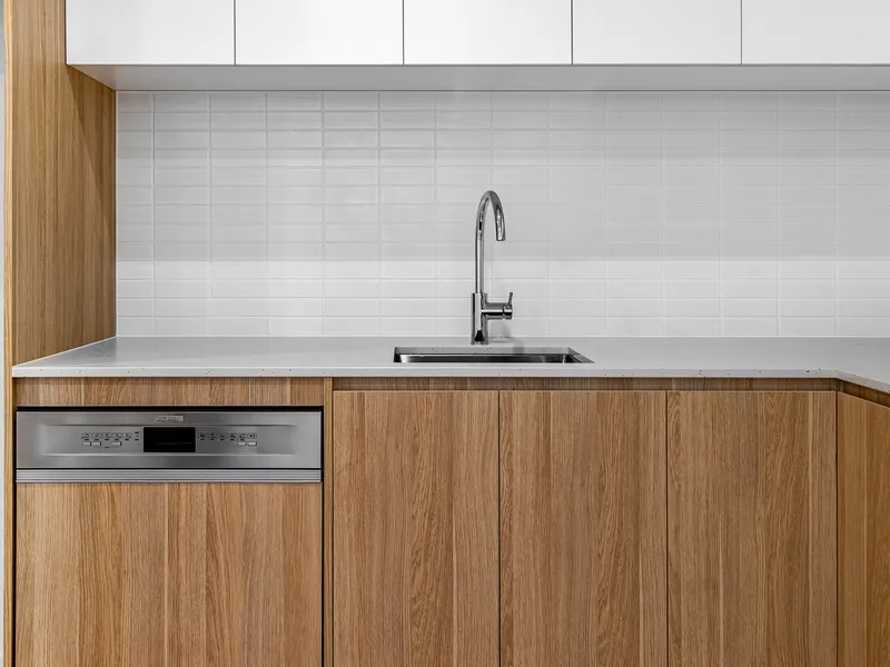 The modern kitchen is designed to impress, featuring quality stainless steel appliances including a gas cooktop, Smeg oven, and Smeg dishwasher, along with ample storage and a generous fridge cavity-ideal for everyday living and hosting.
