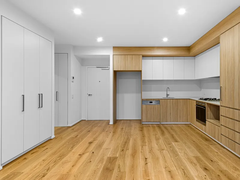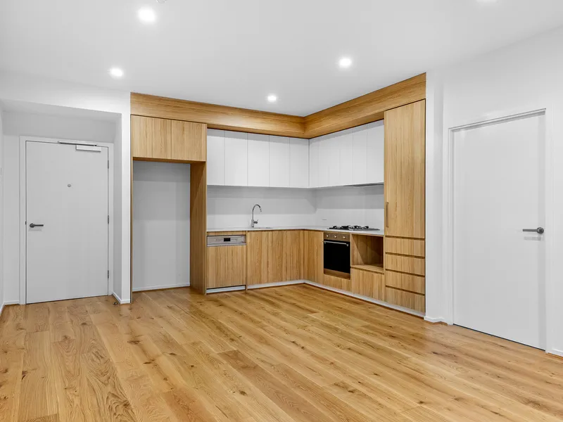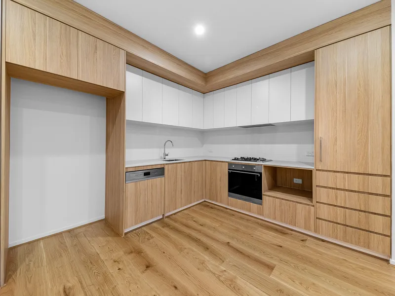 Step inside and enjoy a light-filled open plan living and dining area with beautiful timber flooring and reverse cycle air conditioning for year-round comfort. Flowing seamlessly onto your own private balcony, this space is perfect for relaxing or entertaining while taking in elevated views.