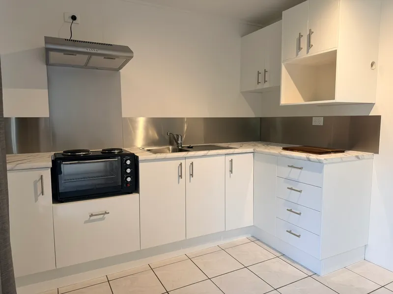 • Kitchen with electric cooking, ample storage including microwave niche and bench space