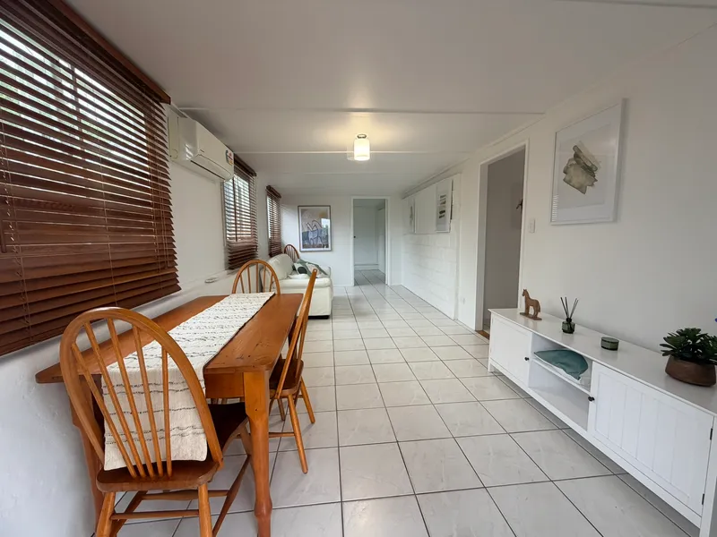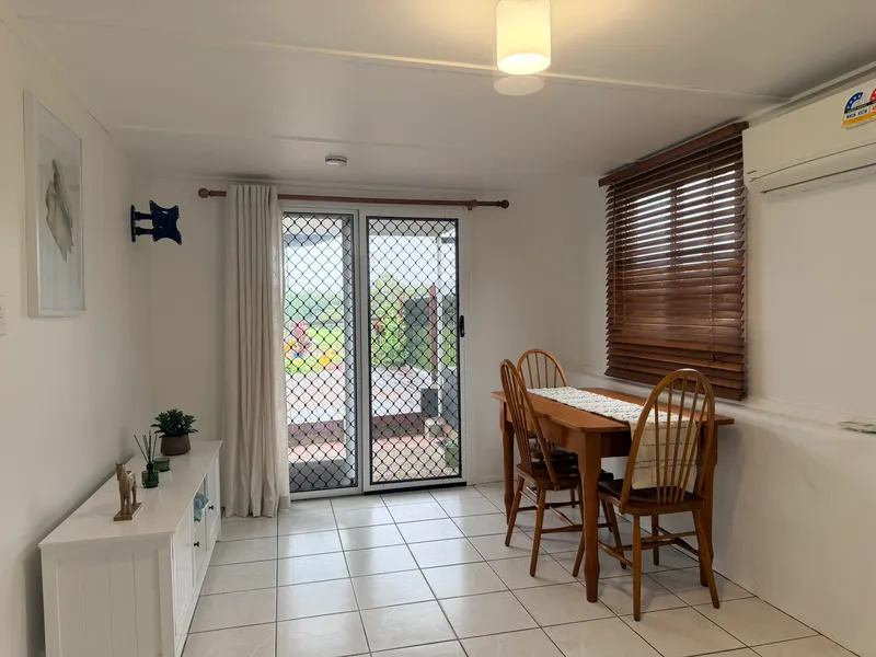• Open plan dining and living area combined with split system air conditioning and direct access outside