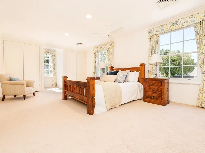High ceilings, abundant natural light and generous proportions throughout, with ample indoor / outdoor entertaining ares flowing to delightful patios and beautifully established gardens