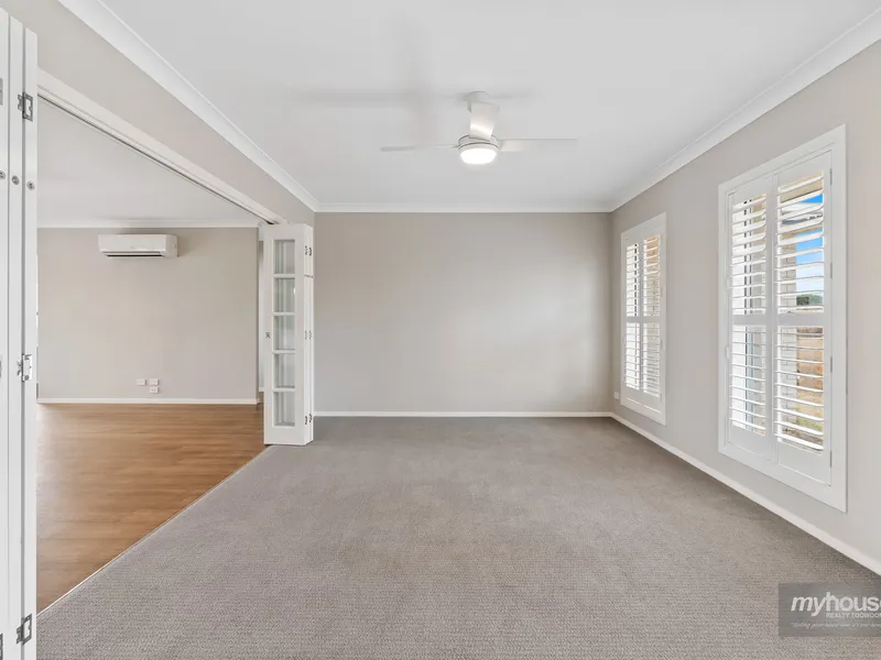 - Formal lounge room adjacent to central living room with bi-fold doors and plantation shutters